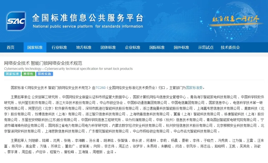 作為主要起草單位之一,櫻花智能鎖與公安部第三研究所、中國網(wǎng)絡(luò)安全審査認(rèn)證和市場(chǎng)監(jiān)管大數(shù)據(jù)中心、國家計(jì)算機(jī)網(wǎng)絡(luò)與信息安全管理中心、中國科學(xué)院軟件研究所、國家信息中心、阿里巴巴(北京)軟件服務(wù)有限公司、中國科學(xué)院信息工程研究所、華為終端有限公司等多個(gè)權(quán)威機(jī)構(gòu)及單位,一起充分發(fā)揮自身的專業(yè)優(yōu)勢(shì),積極參與標(biāo)準(zhǔn)的制定過程,讓標(biāo)準(zhǔn)更具針對(duì)性與引領(lǐng)性,從根本上助力提升整個(gè)行業(yè)的技術(shù)水平和產(chǎn)品質(zhì)量,增強(qiáng)消費(fèi)者信心,促進(jìn)市場(chǎng)的健康有序發(fā)展。
