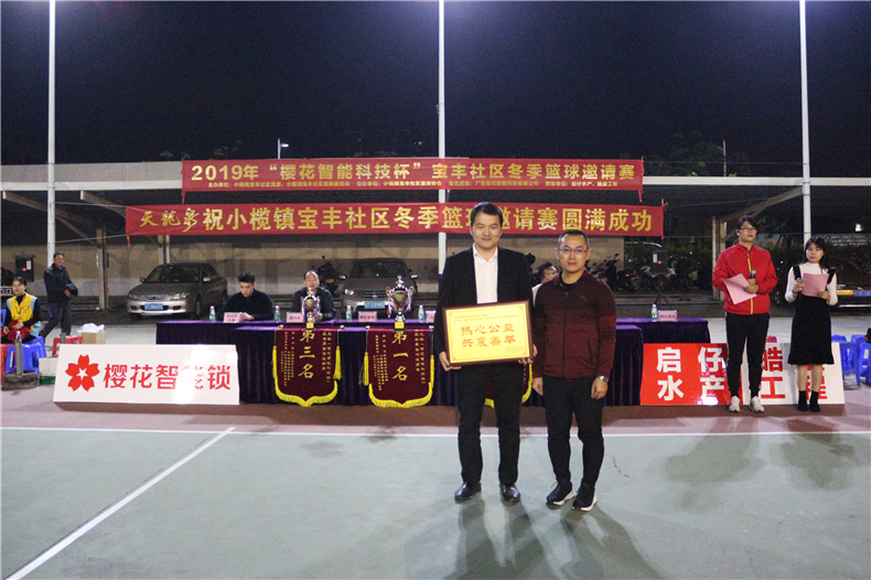 當(dāng)晚,涼風(fēng)微寒,也阻擋不了觀眾們的熱情,早早來到賽場(chǎng)等待開賽。比賽開始前,各代表隊(duì)在志愿領(lǐng)隊(duì)的帶領(lǐng)下分別繞場(chǎng)一周,展現(xiàn)了積極向上的精神風(fēng)貌與奮力拼搏的團(tuán)隊(duì)凝聚力?,F(xiàn)場(chǎng)還進(jìn)行了授牌儀式,櫻花智能鎖榮獲“熱心公益共襄盛舉”的企業(yè)贊譽(yù)。